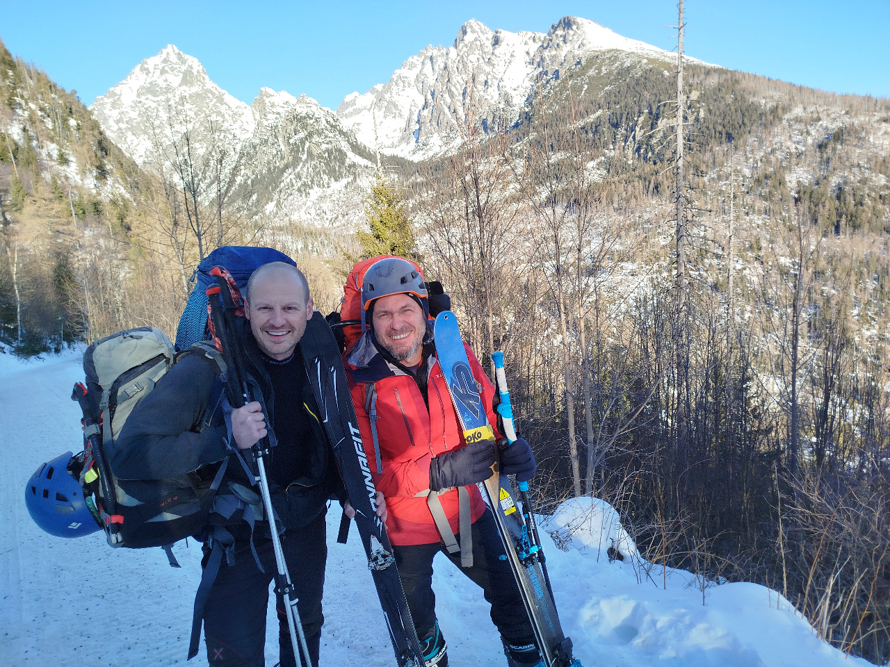 Při sestupu jsme hned z kraje dvě blbé délky slanili a zbytek už bylo vesměs obyčejné klesání. Sestup byl nakonec rychlý, na Skalnaté chatě jsme dali vítězné pivo a vítěznou kofolu a pelášili na naši chatu. Ještě za světla našli správný směr a skoro nebylo potřeba čelovek. Sníh svítil dostatečně.